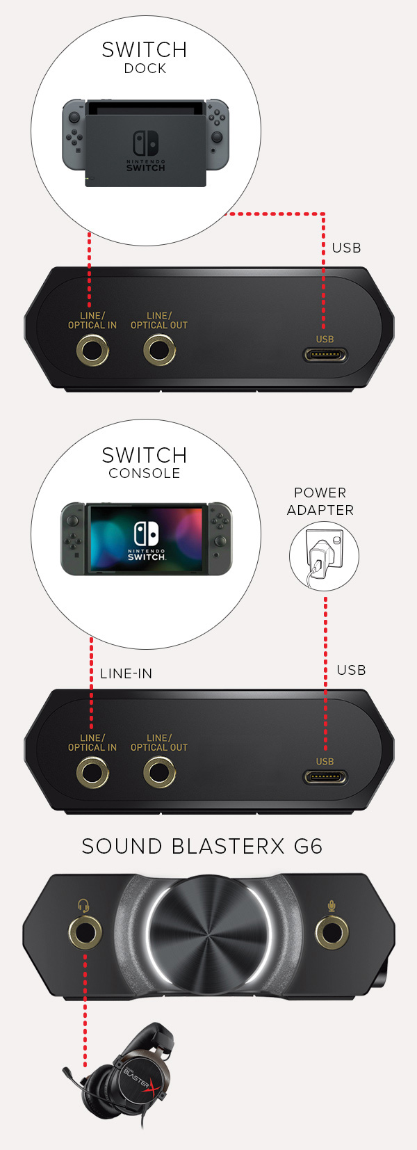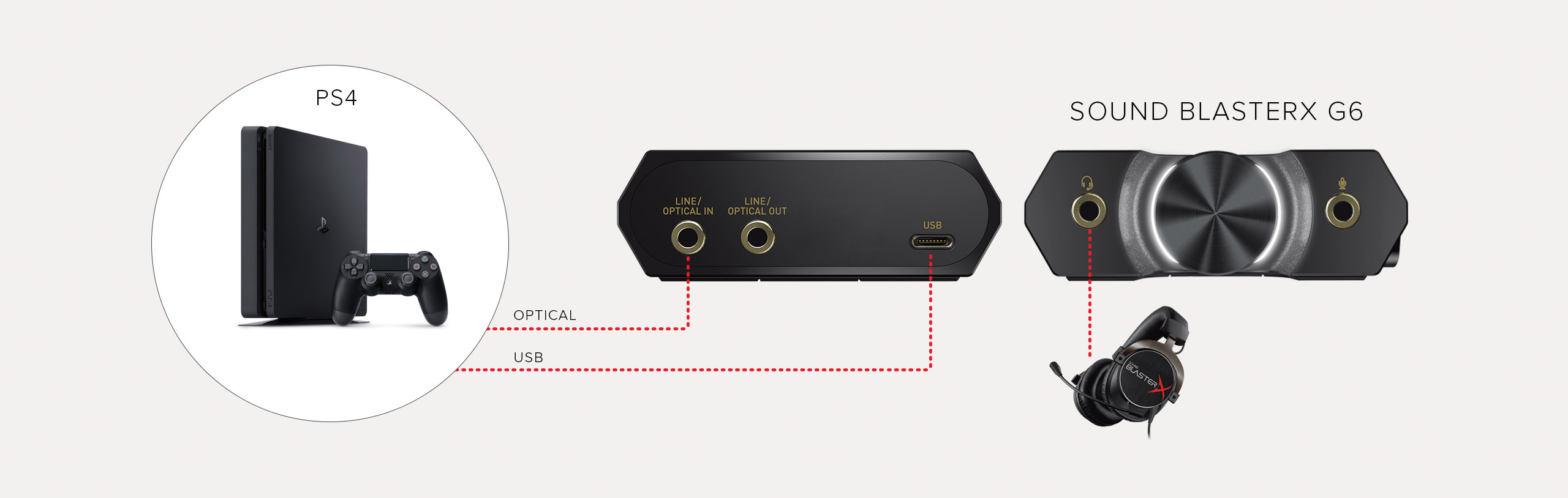 How to set up GameVoice Mix for PS4 / PS5It doesn't matter which camp you're in - PC or console - we've got you covered. The Sound BlasterX G6 features a wide array of connectivity options - optical, USB, and even line-in - which means your gaming audio will be instantly improved whether you're on PC, PS4, Xbox, or even a Nintendo Switch.